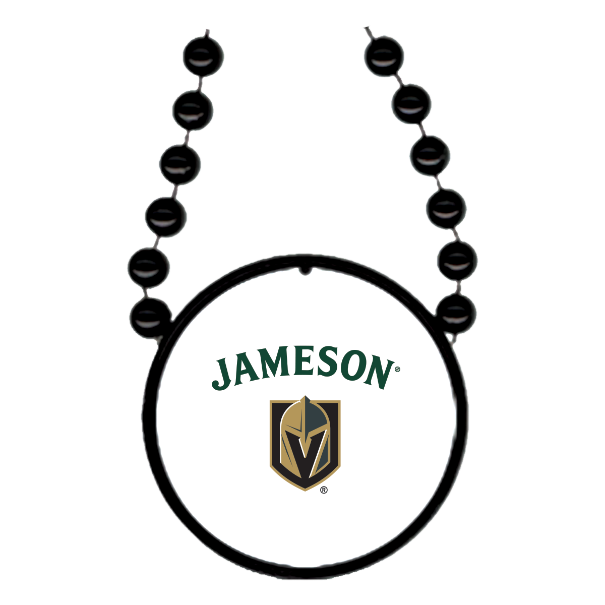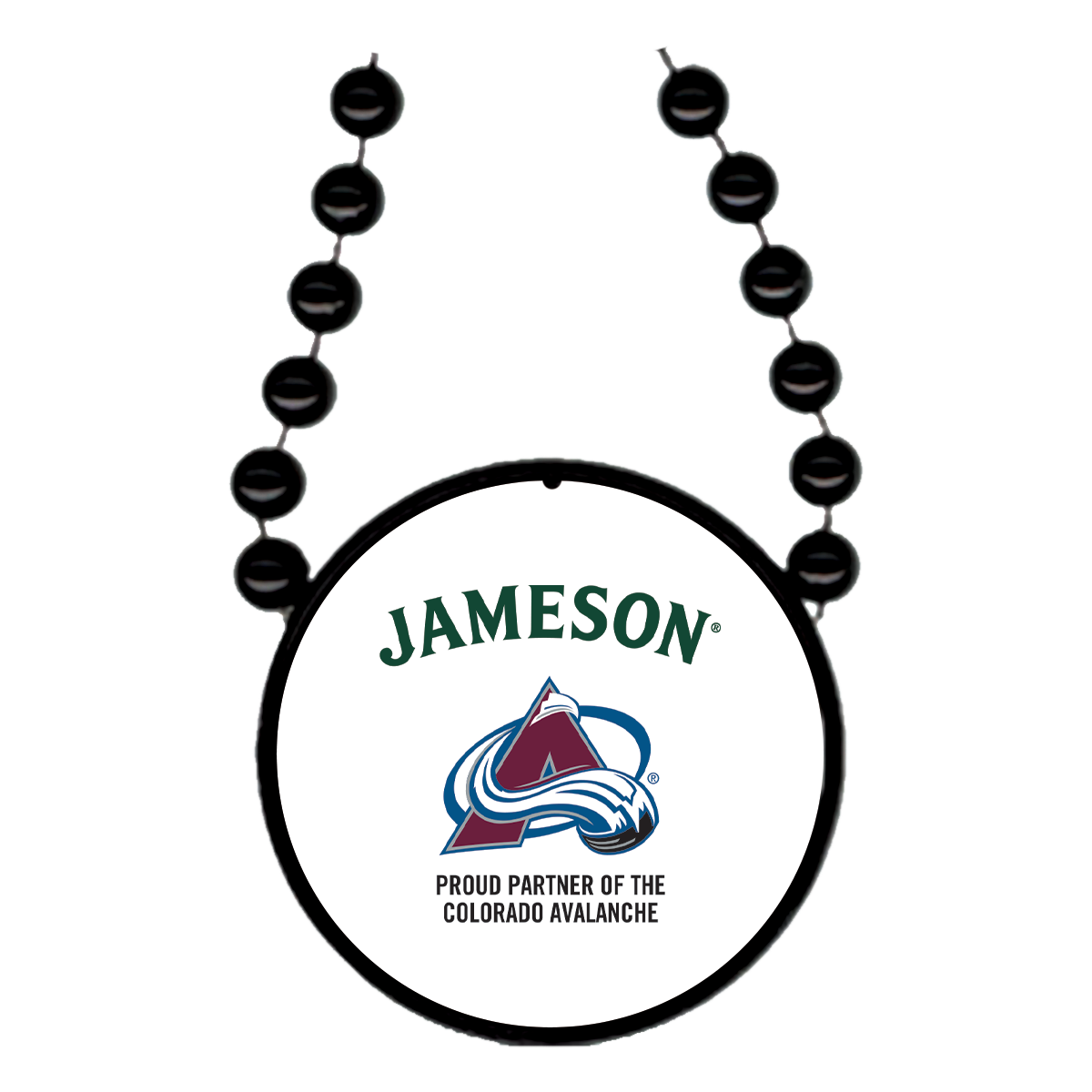 33" bead strand with 7.5mm round beads features 2.5" round inline medallion with full color digitally printed decal on one side to sport your team pride.