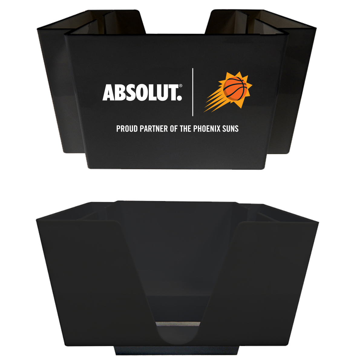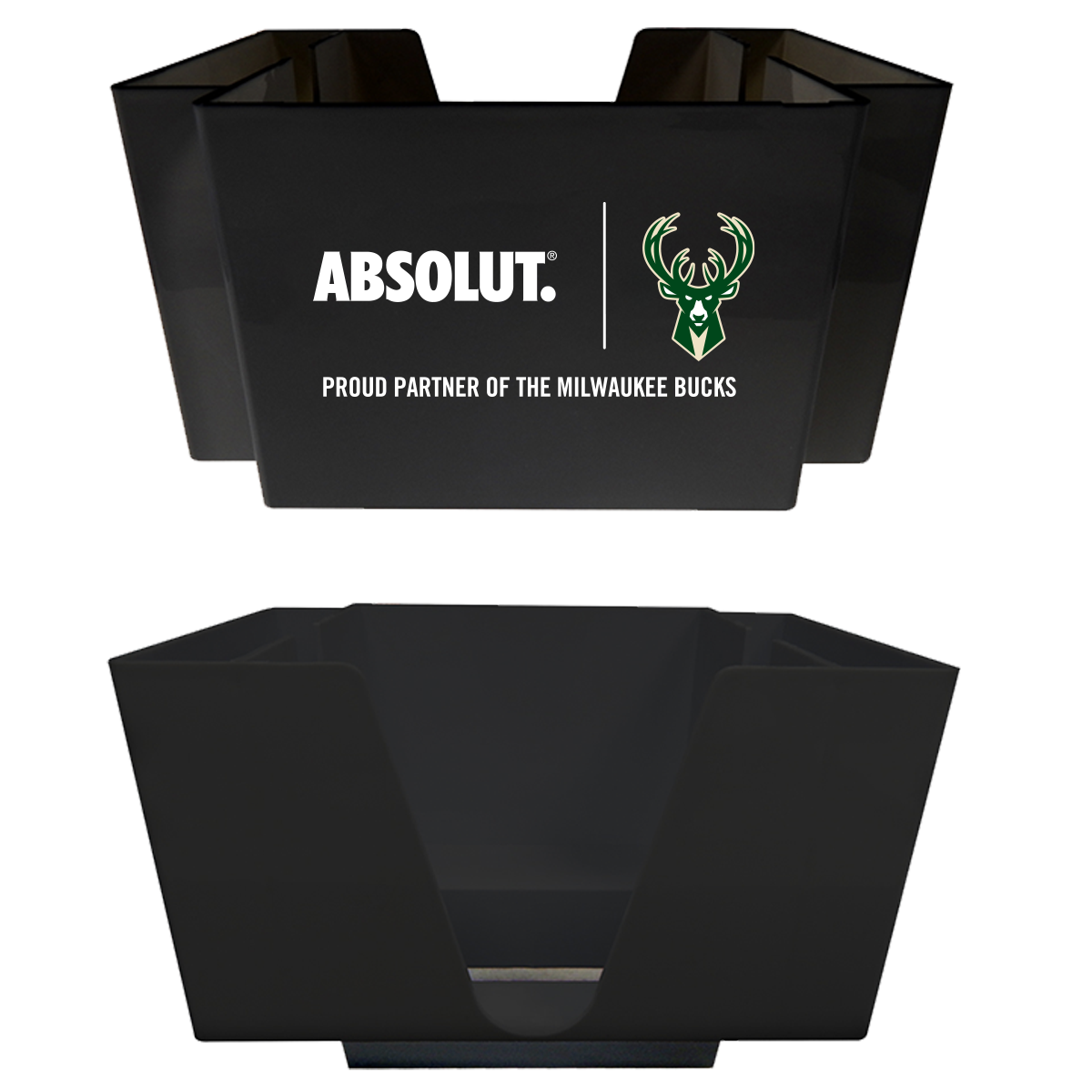 Durable and easy to clean, plastic napkin caddies are designed to fit in a standard bar rail or sit on tabletops; they hold 5.25" square napkins.