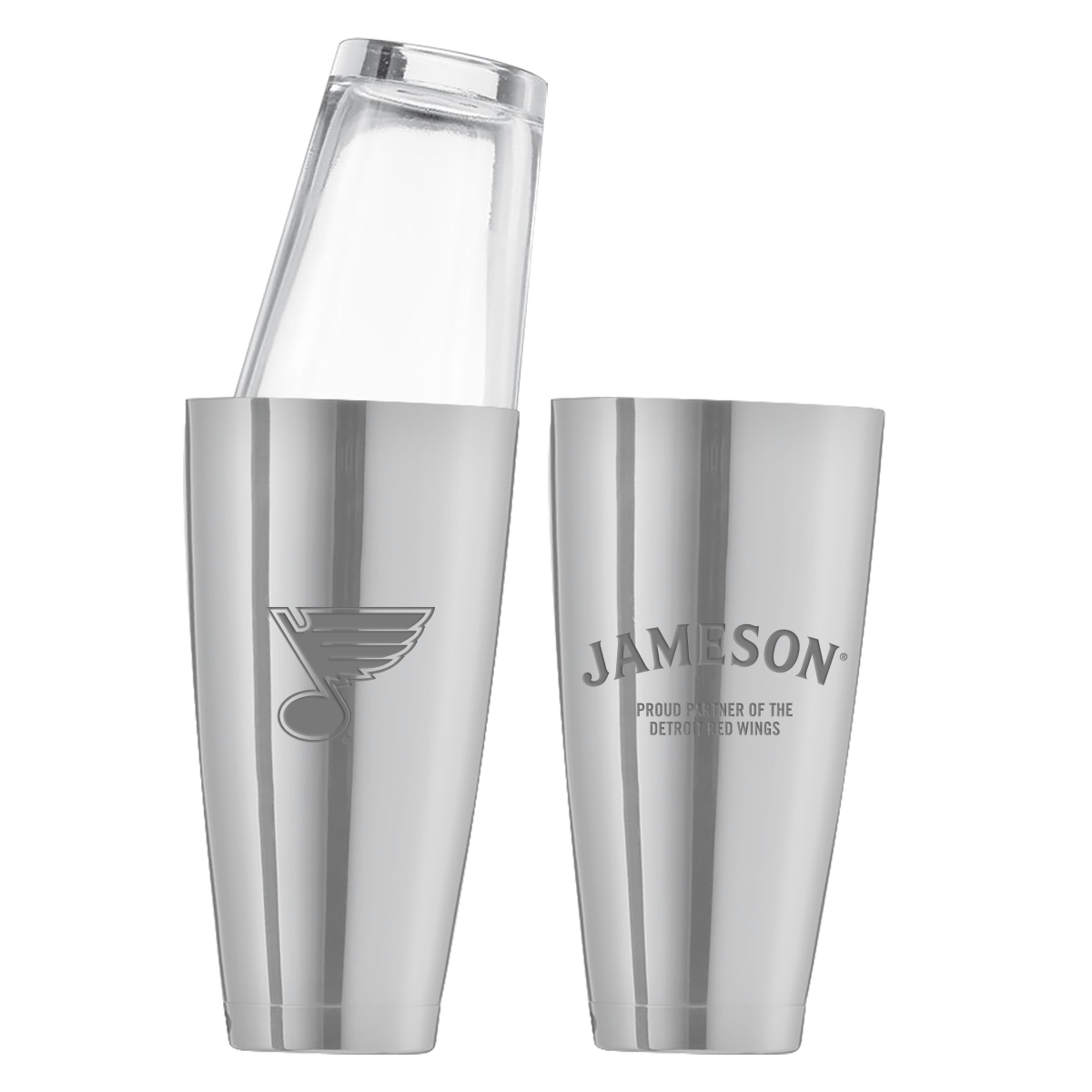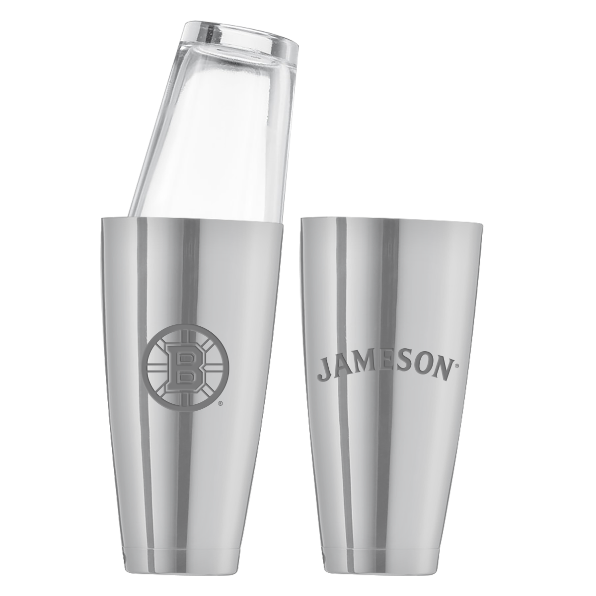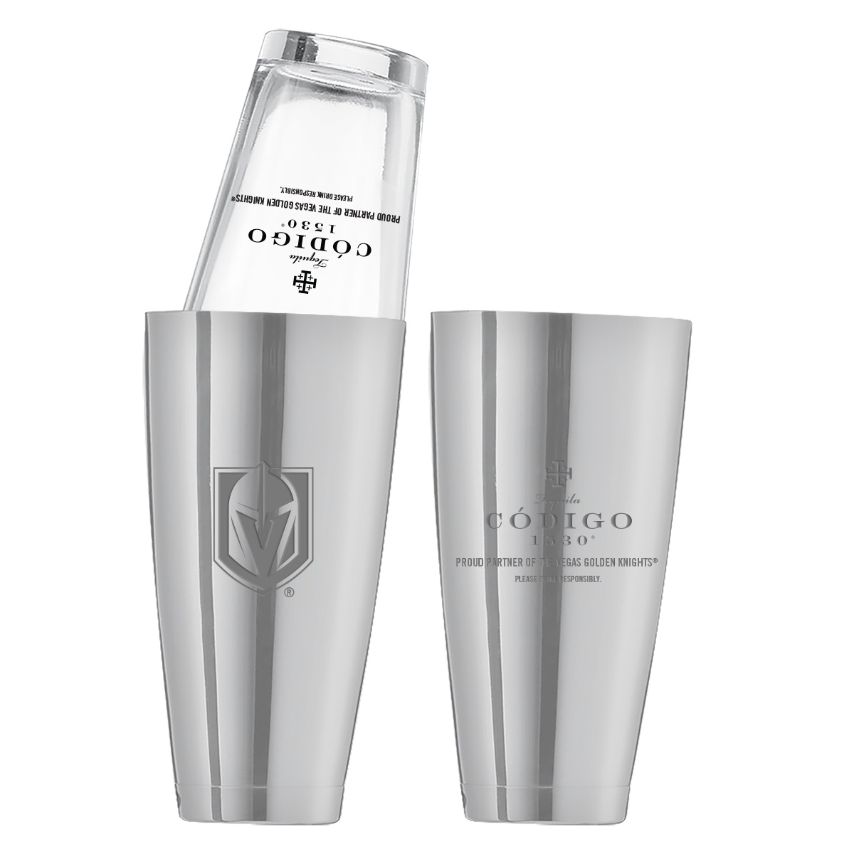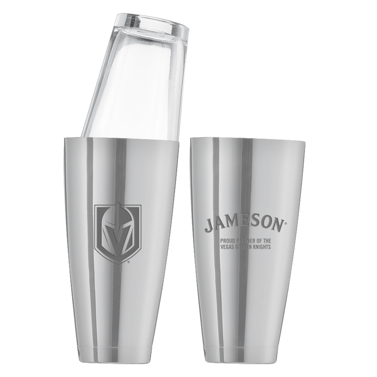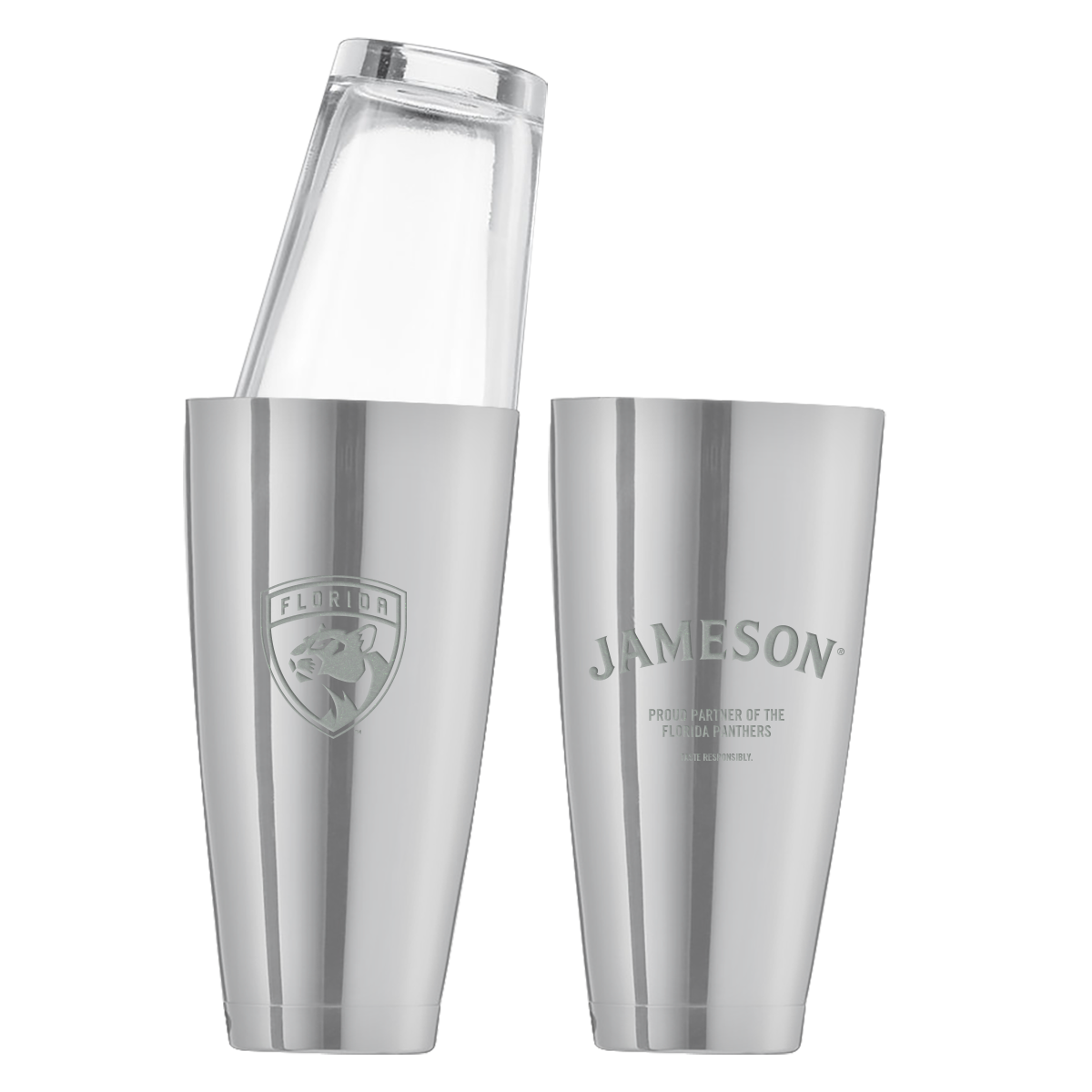 This shaker cup is 28 oz. and has a mirrored finish.